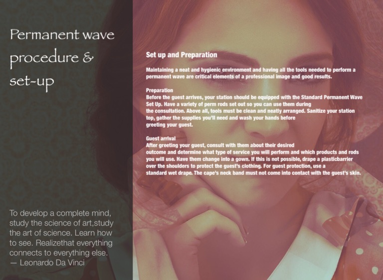 Before the guest arrives, your station should be equipped with the Standard Permanent Wave Set Up. Have a variety of perm rods set out so you can use them during