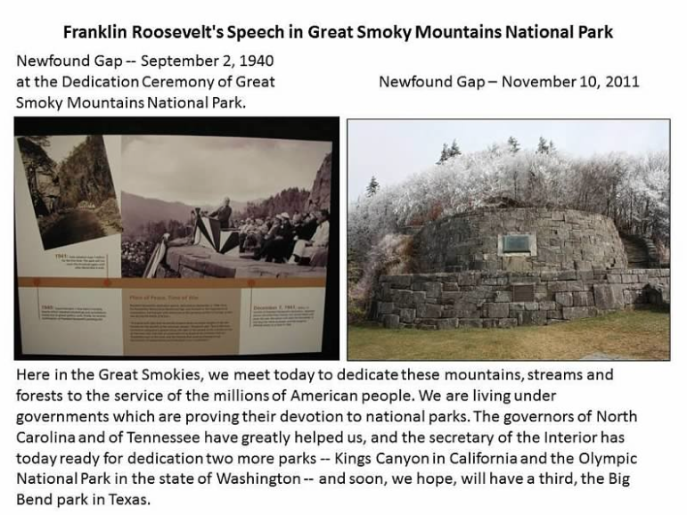 The site from where former U.S. President Franklin D. Roosevelt formally dedicated the Great Smoky Mountains National Park on September 2, 1940.