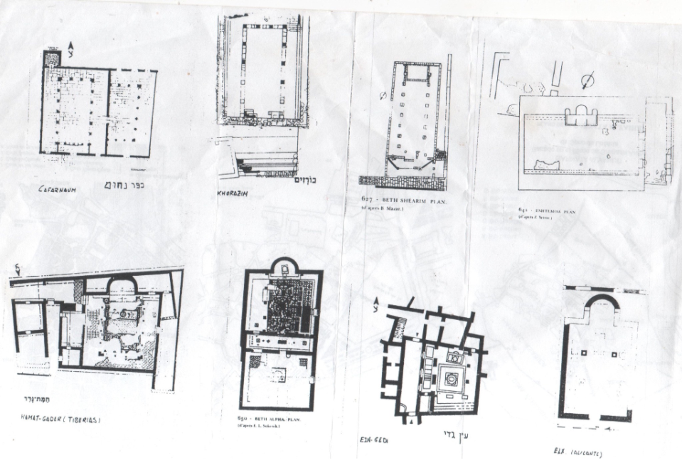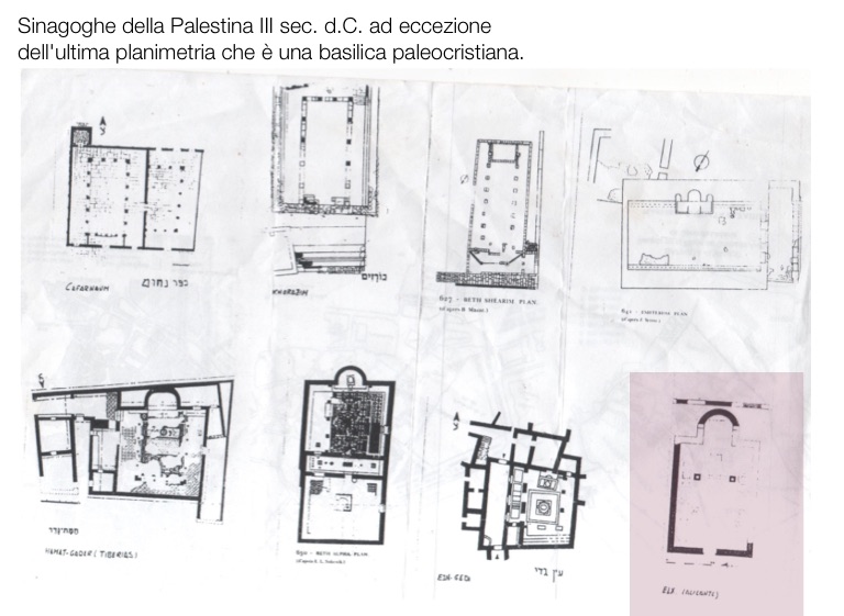 Sinagoghe della Palestina III sec. d.C. ad eccezione dell'ultima planimetria che รจ una basilica paleocristiana.