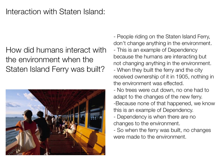 How did humans interact with the environment when the Staten Island Ferry was built?