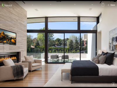 This larger room consists of a bed and two chairs, and it surprisingly appears to be proportional. It's is very open and it looks very calm. The space is used well, it's neat and clutter free.