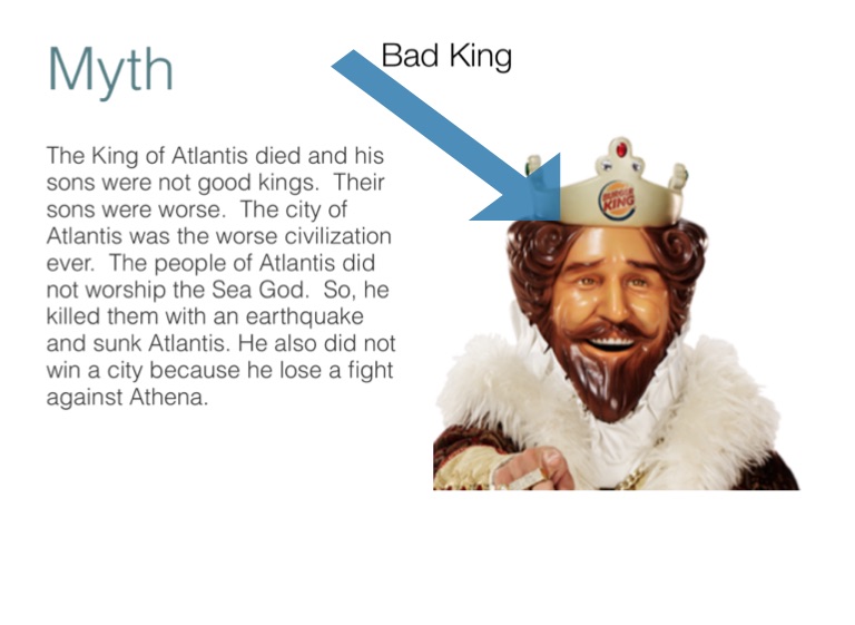 The King of Atlantis died and his sons were not good kings. Their sons were worse. The city of Atlantis was the worse civilization ever. The people of Atlantis did not worship the Sea God. So, he killed them with an earthquake and sunk Atlantis. He also did not win a city because he lose a fight against Athena.