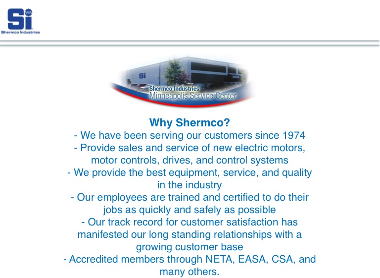 - Provide sales and service of new electric motors, motor controls, drives, and control systems