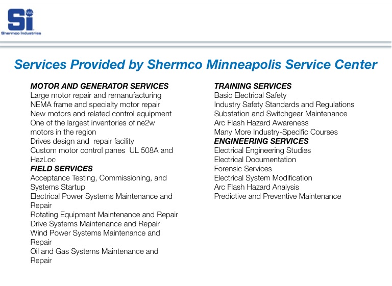Services Provided by Shermco Minneapolis Service Center