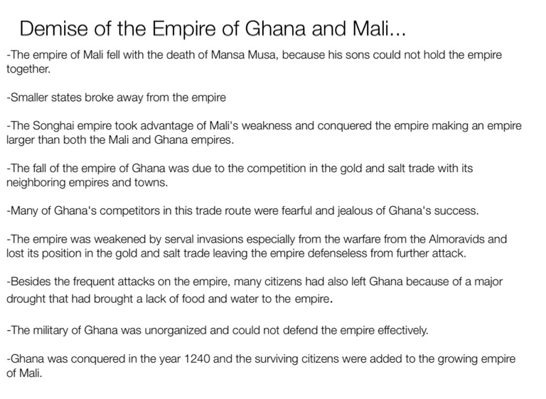 Demise of the Empire of Ghana and Mali...