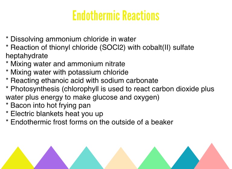 * Photosynthesis (chlorophyll is used to react carbon dioxide plus water plus energy to make glucose and oxygen)