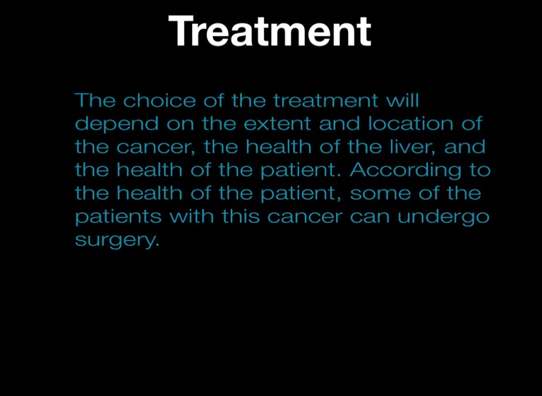 The choice of the treatment will depend on the extent and location of the cancer, the health of the liver, and the health of the patient. According to the health of the patient, some of the patients with this cancer can undergo surgery.