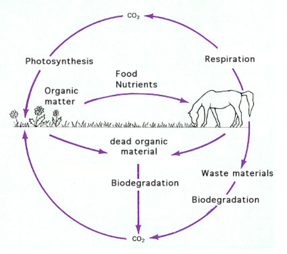 When an animal or other living organism takes in oxygen from food nutrients in plants they respirate releasing carbon dioxide back into the air. This also happens when an an organisms dies and starts to decompose, more carbon dioxide is released.