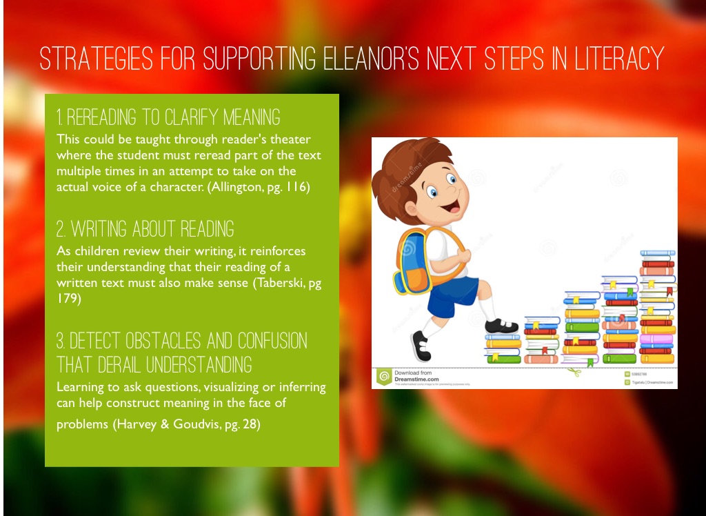 Strategies for supporting Eleanor’s next steps in literacy