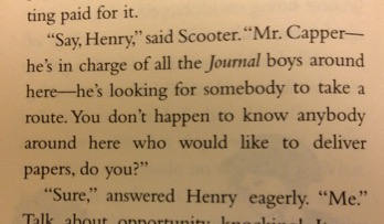 This paragraph threw her off with the word "say," being used as a greeting. The dashes after "Mr. Capper-", and "here-", also confused her. She reread this passage a few times and eventually turned to me for guidance.