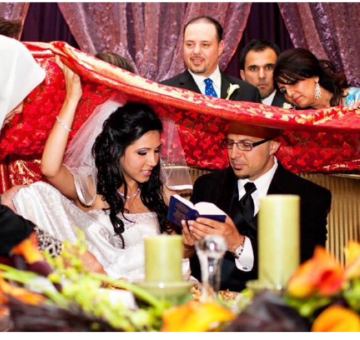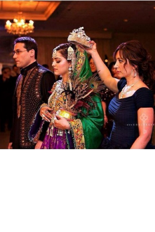 Men from both sides sit in a room to listen to khutba nikah (Dari for: marriage speech) at the bride's home. The groom is then taken to inside the house, where the bride is waiting him in a decorated stage among a crowd of women and girls singing and dancing.