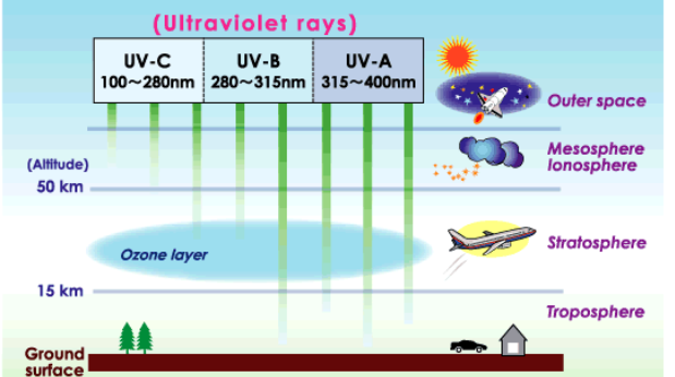 UVB Rays are 290-320 nanometers. It goes through the atmosphere and causes skin aging, eye damage cataracts, skin cancers and damage to the immune system, UVA Rays does all this damage also.