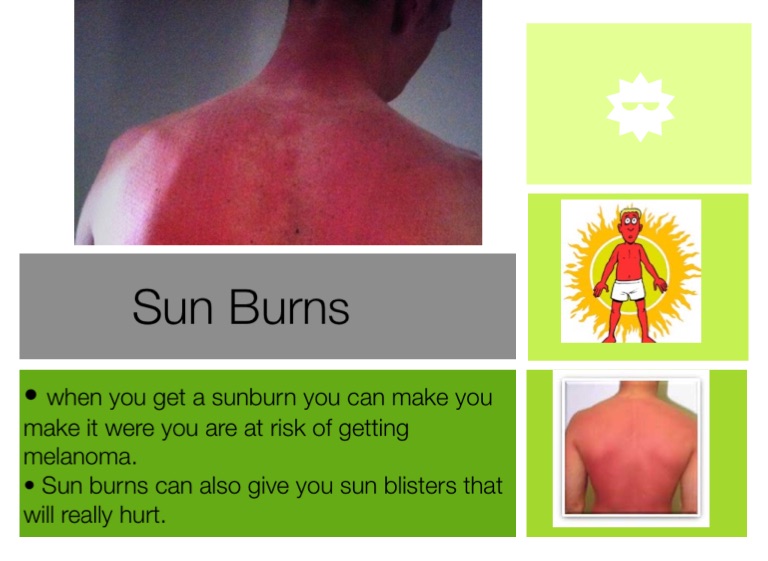 • when you get a sunburn you can make you make it were you are at risk of getting melanoma.