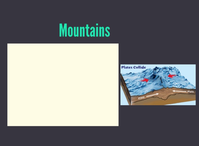 • Mountains are caused when two continental plates are converging.