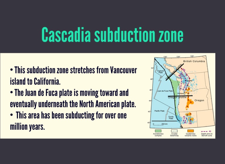 • The Juan de Fuca plate is moving toward and eventually underneath the North American plate.