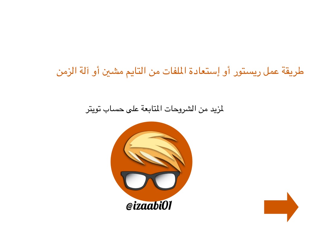 طريقة عمل ريستور أو إستعادة الملفات من التايم مشين أو آلة الزمن