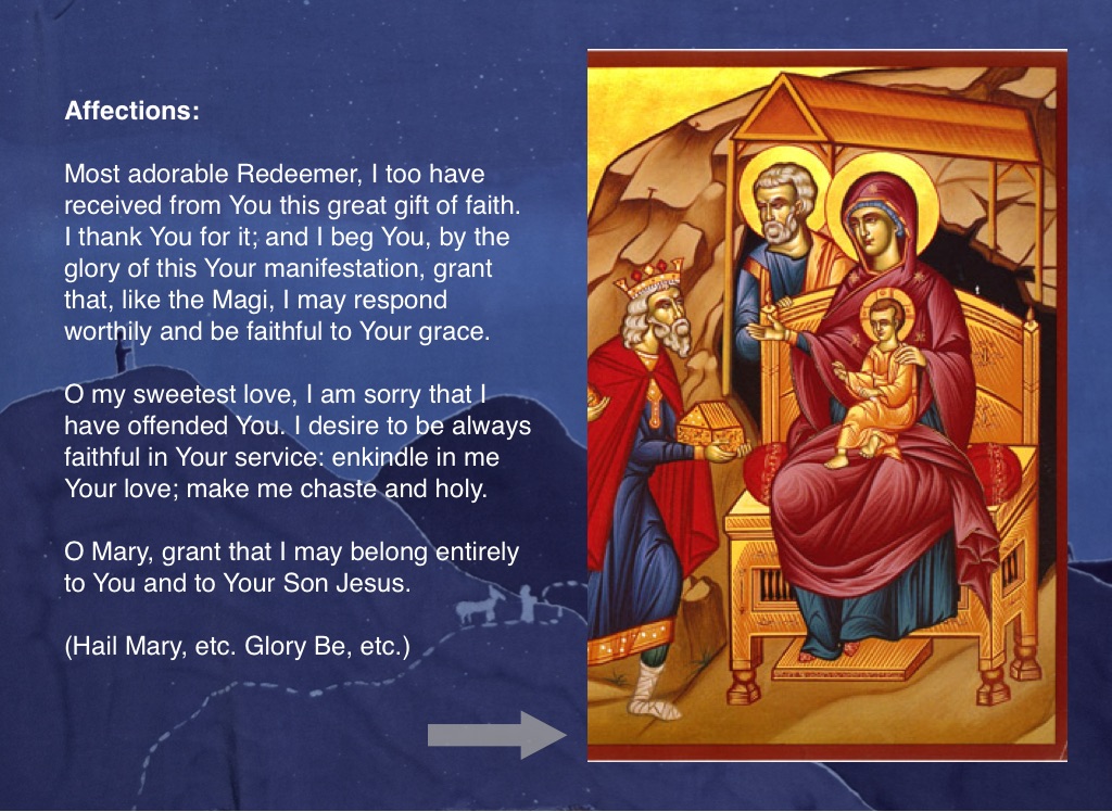 Most adorable Redeemer, I too have received from You this great gift of faith. I thank You for it; and I beg You, by the glory of this Your manifestation, grant that, like the Magi, I may respond worthily and be faithful to Your grace.