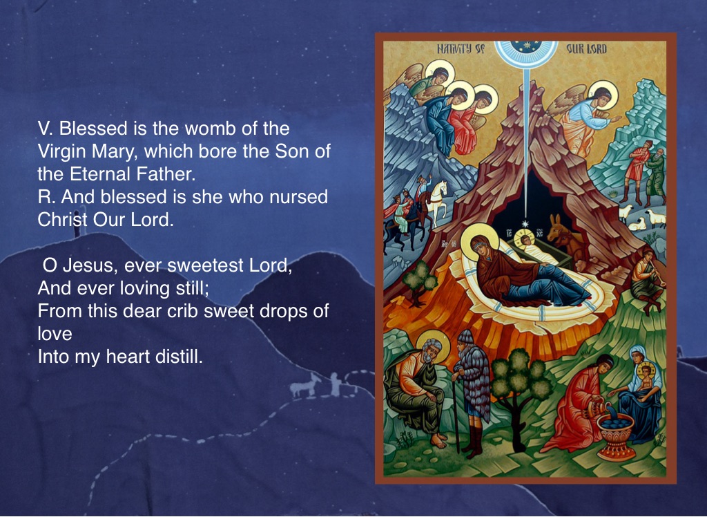 A guide to a traditional practice credited to St. Alphonsus Maria de Liguori. This devotion is styled much like the “Stations of the Cross,” but focusing on Christ’s Incarnation, Birth and Infancy.