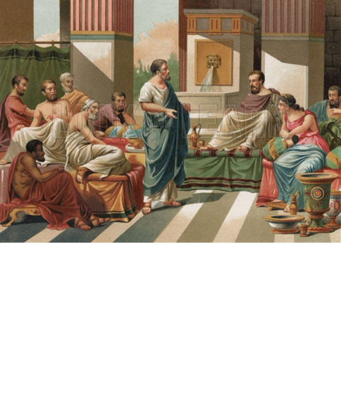 Below right: Demodocus plays songs from the Trojan war, Odysseus weeps at the banquet.
