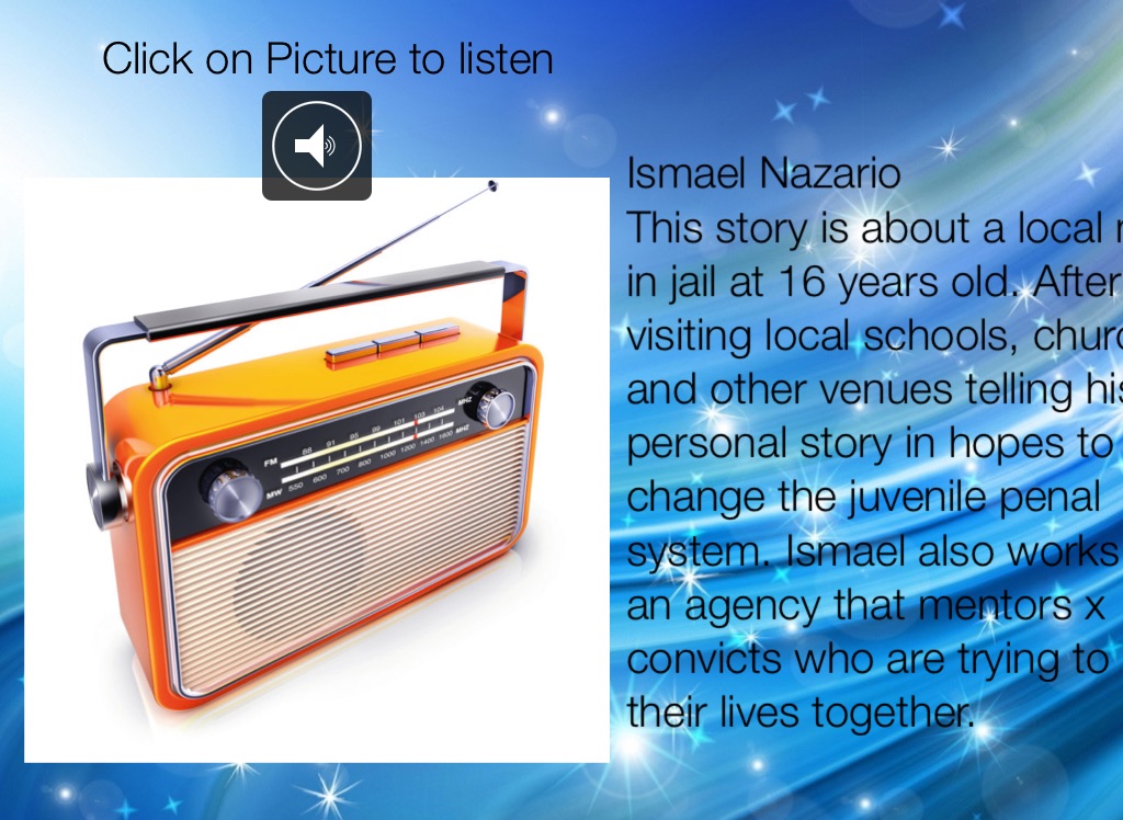 This story is about a local man in jail at 16 years old. After visiting local schools, churches and other venues telling his personal story in hopes to change the juvenile penal system. Ismael also works for an agency that mentors x convicts who are trying to put their lives together.