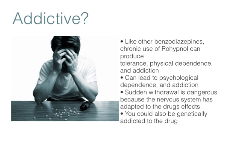 • Like other benzodiazepines, chronic use of Rohypnol can produce