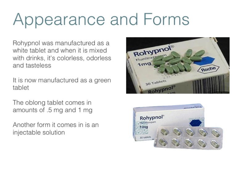 Rohypnol was manufactured as a white tablet and when it is mixed with drinks, it's colorless, odorless and tasteless