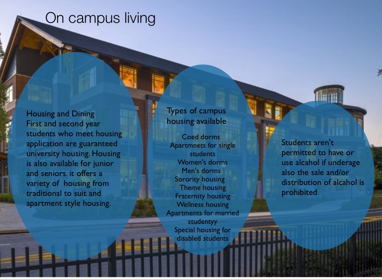 First and second year students who meet housing application are guaranteed university housing. Housing is also available for junior and seniors. it offers a variety of housing from traditional to suit and apartment style housing.