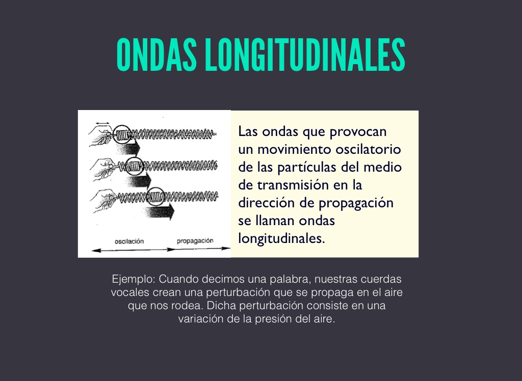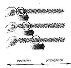 Las ondas que provocan un movimiento oscilatorio de las partículas del medio de transmisión en la dirección de propagación se llaman ondas longitudinales.