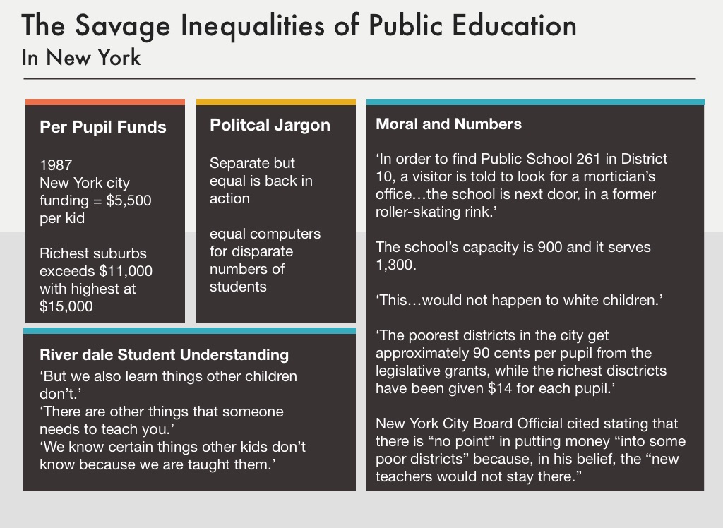New York City Board Official cited stating that there is “no point” in putting money “into some poor districts” because, in his belief, the “new teachers would not stay there.”