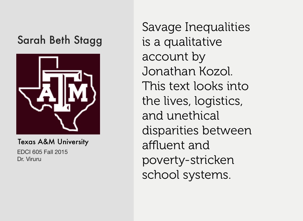 This text looks into the lives, logistics, and unethical disparities between affluent and poverty-stricken school systems.