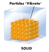 -the particles in a solid stay in place and are not easily moved. However a solid's particles do vibrate.
