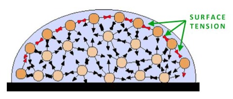 -Surface tension is the result of an inward pull among the molecules of a liquid that brings the molecules on the surface closer together.