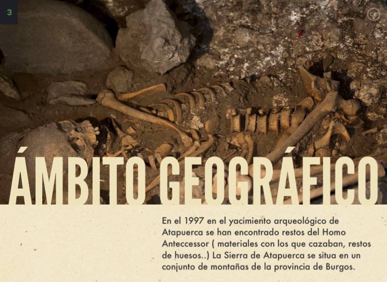 En el 1997 en el yacimiento arqueológico de Atapuerca se han encontrado restos del Homo Anteccessor ( materiales con los que cazaban, restos de huesos..) La Sierra de Atapuerca se situa en un conjunto de montañas de la provincia de Burgos.