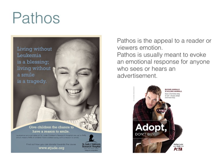 Pathos is usually meant to evoke an emotional response for anyone who sees or hears an advertisement.
