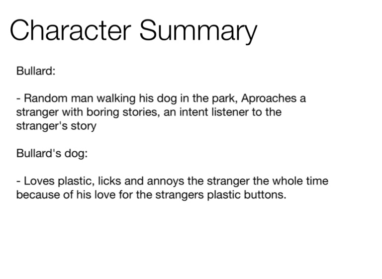 - Random man walking his dog in the park, Aproaches a stranger with boring stories, an intent listener to the stranger's story