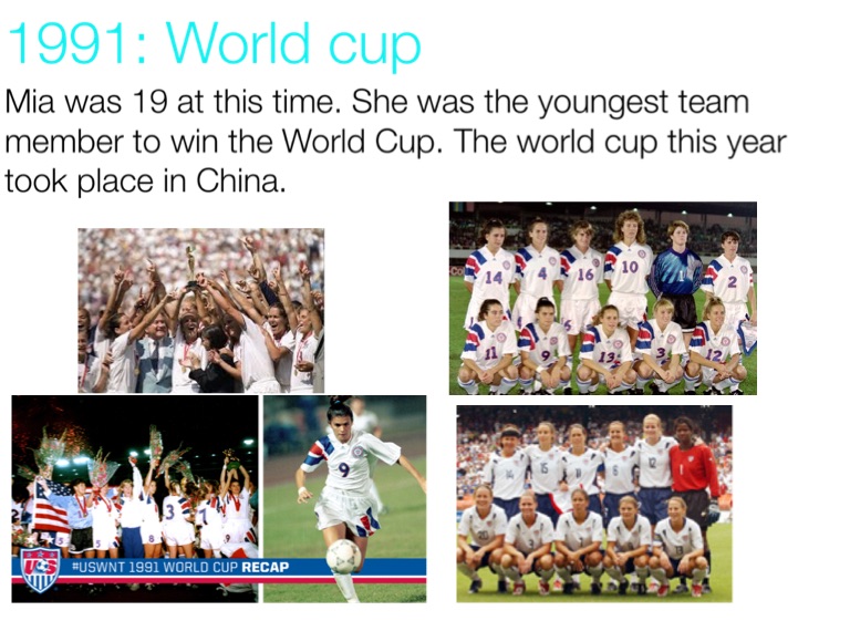 Mia was 19 at this time. She was the youngest team member to win the World Cup. The world cup this year took place in China.