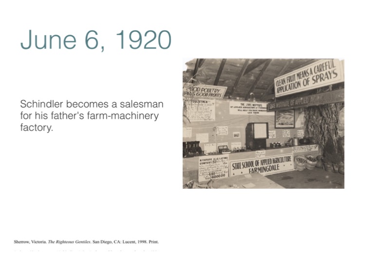 Schindler becomes a salesman for his father's farm-machinery factory.