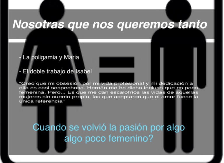 "Creo que mi obsesión por mi vida profesional y mi dedicación a ella es casi sospechosa. Hernán me ha dicho incluso que es poco femenina. Pero... Es que me dan escalofríos las vidas de aquellas mujeres sin cuento propio, las que aceptaron que el amor fuese la única referencia"