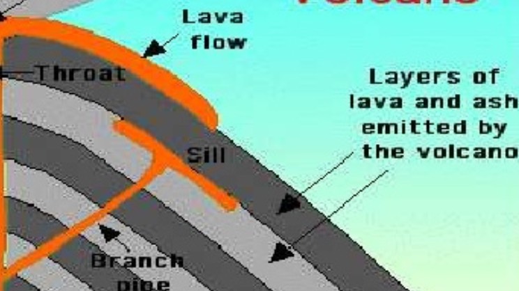 Volcanoes that have this pattern are often called Stratovolcanoes. They usually have viscous lava and can be quite deadly. The ash and lava layers act as shields to protect the rest of the volcano.
