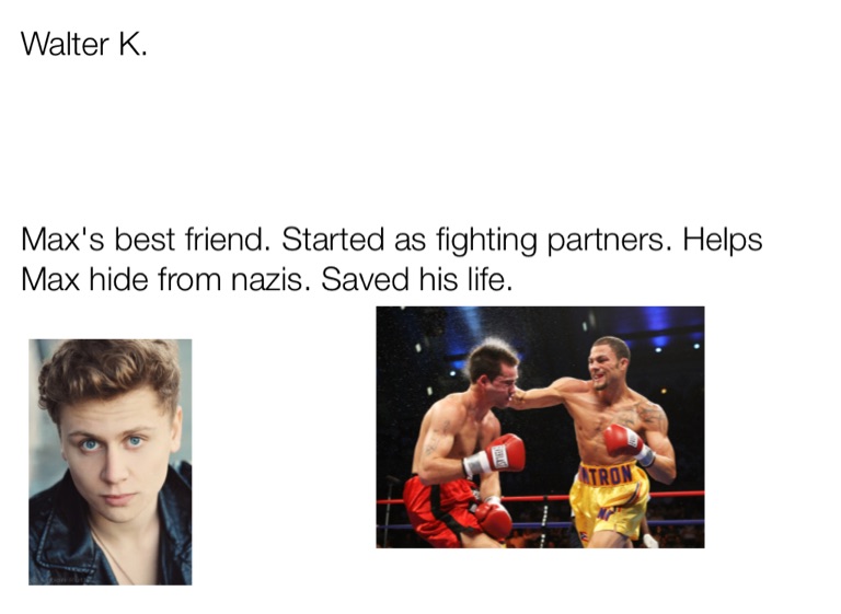 Max's best friend. Started as fighting partners. Helps Max hide from nazis. Saved his life.