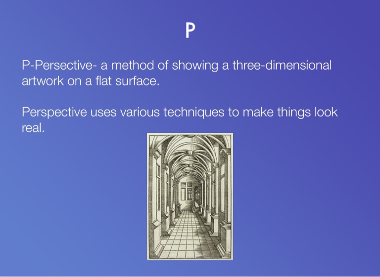 P-Persective- a method of showing a three-dimensional artwork on a flat surface.