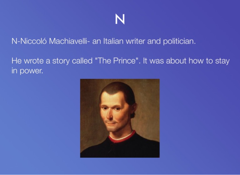 N-Niccoló Machiavelli- an Italian writer and politician.