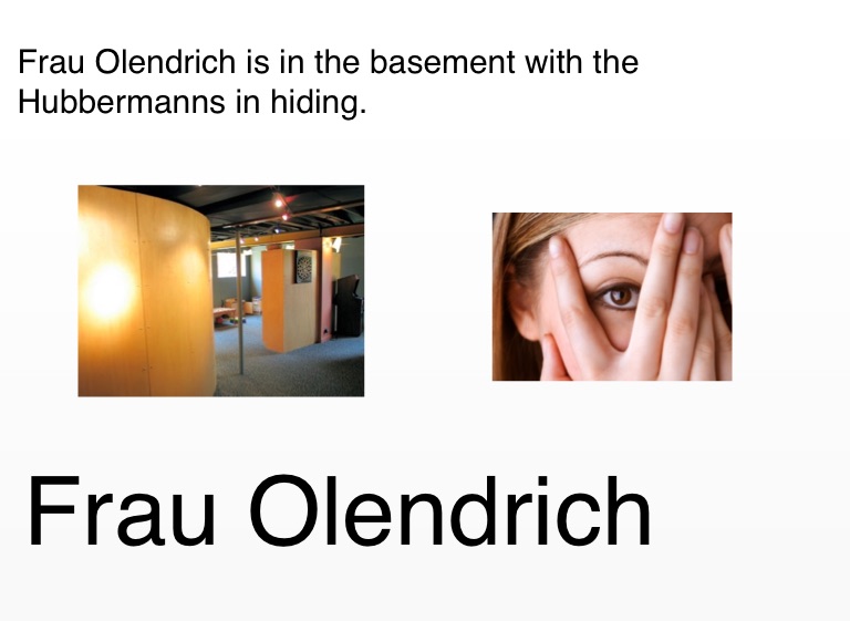 Frau Olendrich is in the basement with the Hubbermanns in hiding.