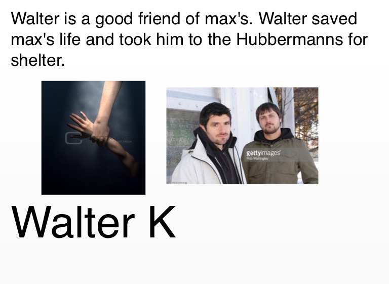 Walter is a good friend of max's. Walter saved max's life and took him to the Hubbermanns for shelter.