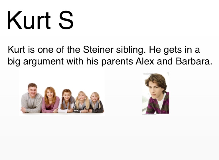 Kurt is one of the Steiner sibling. He gets in a big argument with his parents Alex and Barbara.