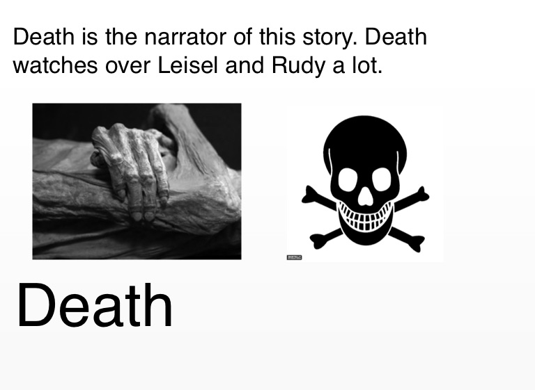 Death is the narrator of this story. Death watches over Leisel and Rudy a lot.