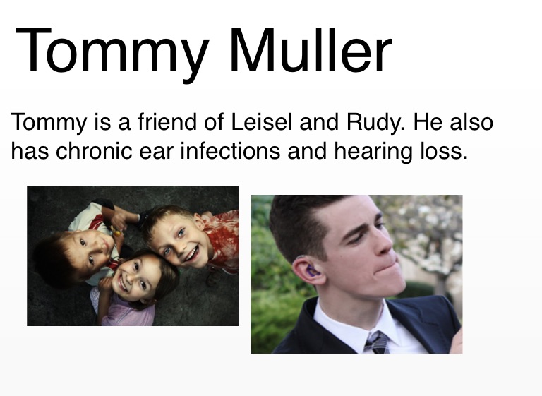 Tommy is a friend of Leisel and Rudy. He also has chronic ear infections and hearing loss.