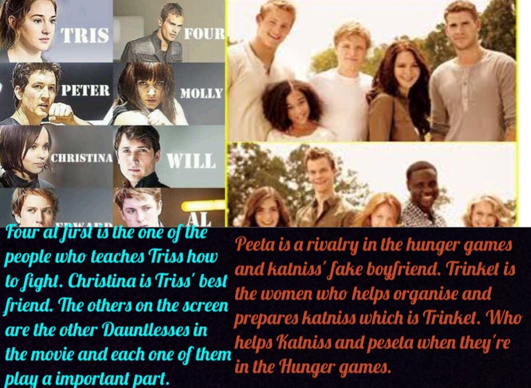 Four at first is the one of the people who teaches Triss how to fight. Christina is Triss' best friend. The others on the screen are the other Dauntlesses in the movie and each one of them play a important part.