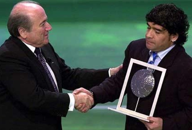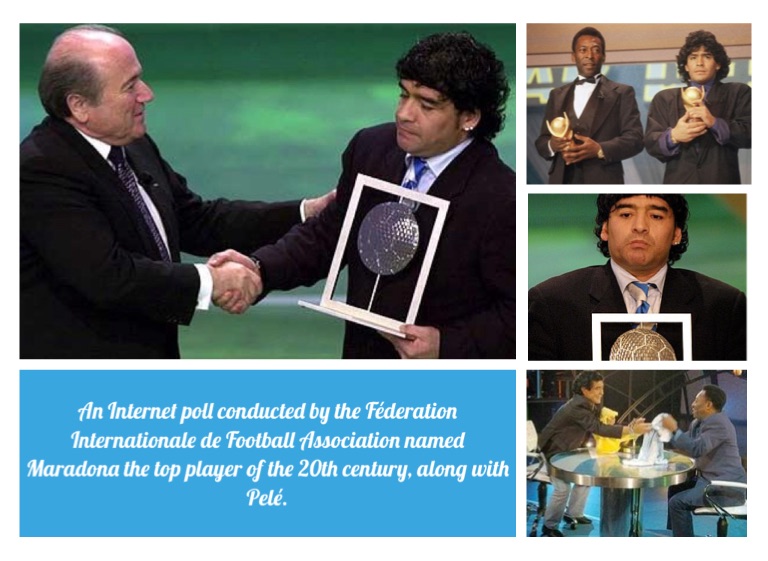 An Internet poll conducted by the Féderation Internationale de Football Association named Maradona the top player of the 20th century, along with Pelé.