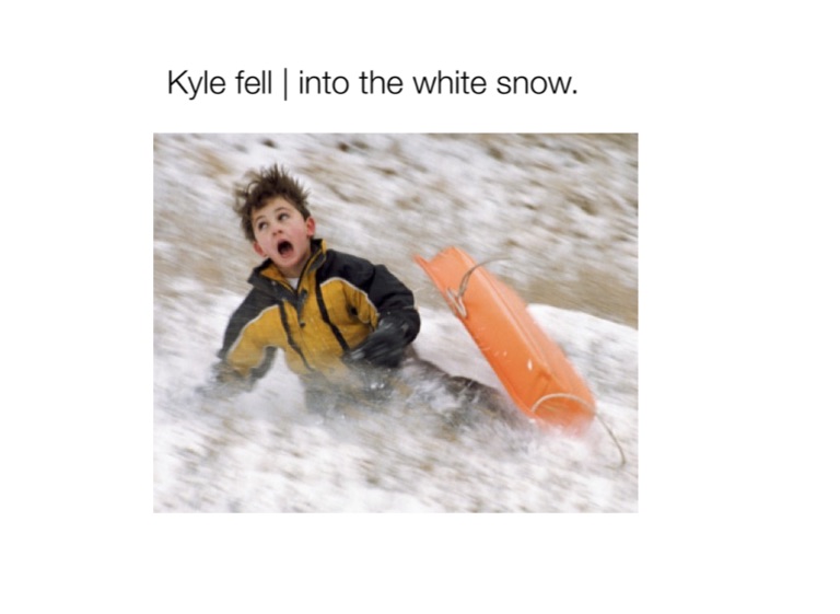 Kyle fell | into the white snow.
